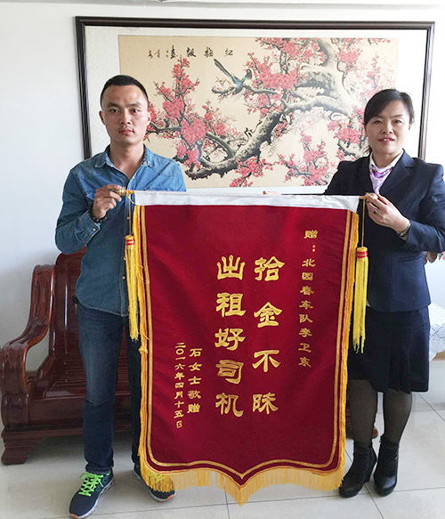 北園春運輸公司出租車女司機拾金不昧送還失物